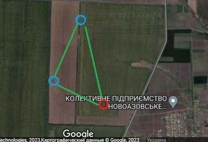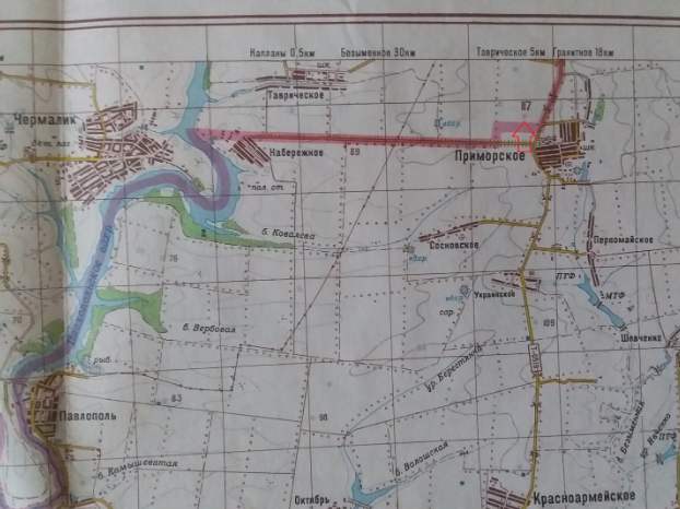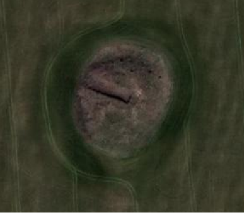 The site is located next to the settlement of Prymorske, 800 meters northwest from the development area. The verification of the locality of this monument raises certain difficulties that are inherent in determining the location of sites situated on wide watersheds of steppe gully systems. However, thanks to the presence of two more rather large barrows within the specified area, which have been preserved and form the corners of what can be called a triangle (picture No. 3) on the map of Theodor Friedrich von Schubert, we can confidently identify this damaged site as a barrow with the historical name Chaiovyi or Prysiazhnyi (“Juror”) (picture No. 1). In respect of this barrow, it should be noted that it is difficult to remotely determine the purpose for which the caponier was created (a fortification structure for flanking or enfilade fire in two opposite directions) measuring 5 x 25 meters, which crossed the mound of the barrow from the northwest, apparently, from the level of the adjacent field in the direction of the center (picture No. 4). Based on the orientation of the caponier and its size, it can be assumed that the purpose of its creation in 2015 was exclusively military, purely extortionate or both.
