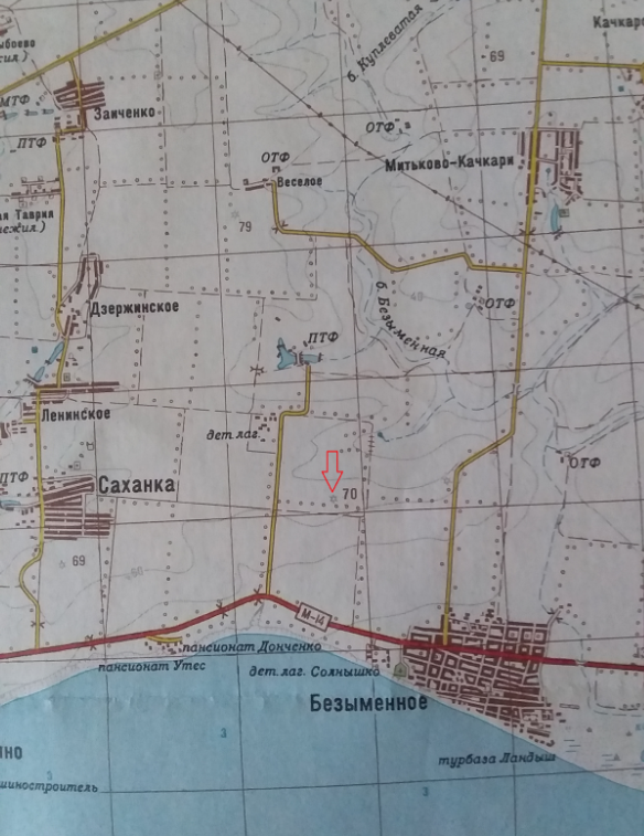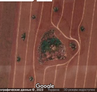 The barrow is located two kilometers northwest of the village of Bezimenne, Novoazovskyi district, next to a wind power station. The diameter of the barrow is 60 meters. Its earthen tumulus affords a clear view of the road Rostov – Mariupol, which led to the creation of defensive structures on it. The first information about the barrow was recorded on maps of the 19th century (picture No. 1). Although located between two other barrows of the same name, the barrow does not have its own designation, which is a unique case. In the 1990s, the Regional Department of Cultural Heritage Protection certified this site and withdrew it from land use, as confirmed by the data of the public cadastral map (picture No. 6).