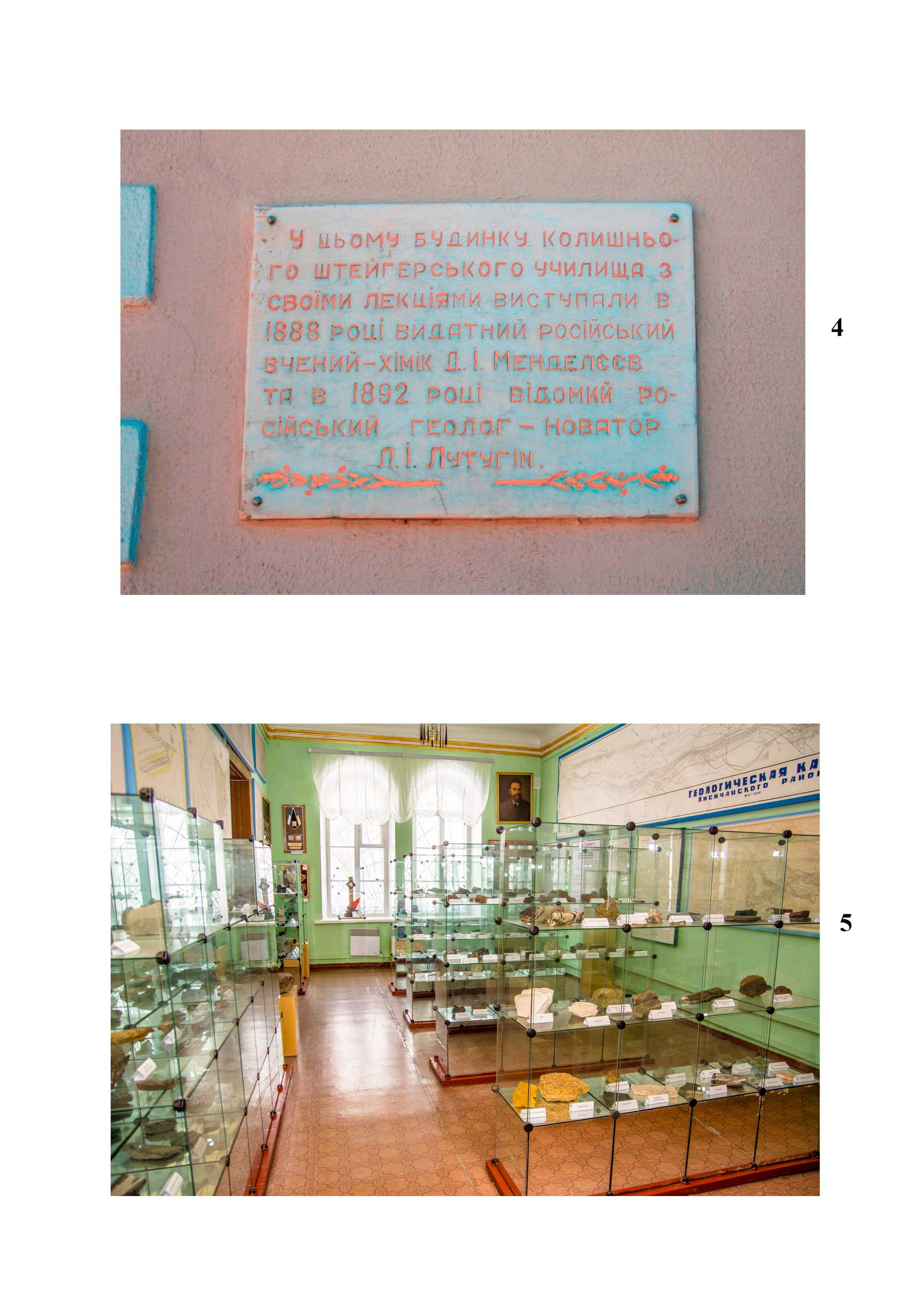 The collection also features materials about miners who worked in local mines – heroes of Socialist Labor I. Ivonin, F. Kapust, I. Pobok, famous engineers and pedagogues N. Lopatin, P. Mordvynov, H. Kopiiko. These materials are grouped in exhibitions dedicated to the centenaries since their birth1.