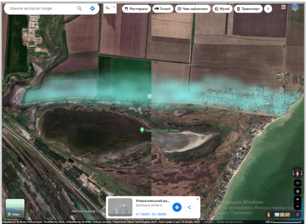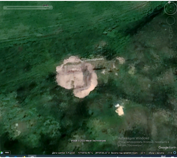 As part of the project for the remote monitoring of cultural heritage sites, the site of illegal archaeological works was determined, which was widely reported in the media in the temporarily occupied territories of Ukraine. The excavations were organized and carried out by representatives of the occupation administration of the so-called DPR under the direct leadership of Aleksandr Kolesnik and Eduard Kravchenko. According to data acquire via remote monitoring, the total lost area of the illegally destratified cultural layer of the Obryv settlement as of 2021 is no less than 150 square meters.