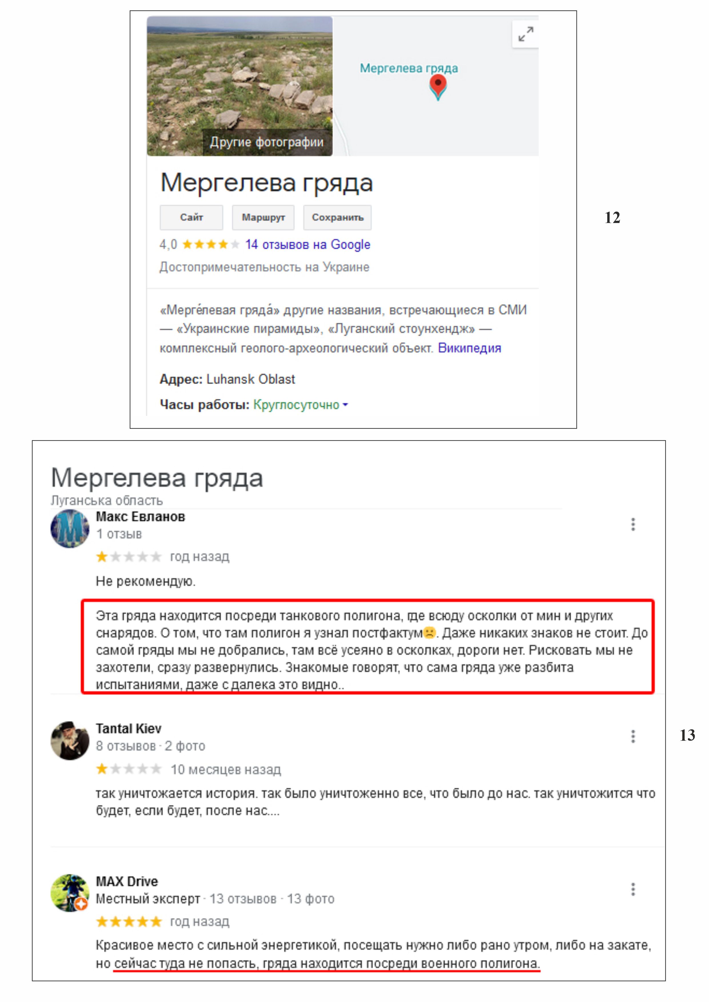 In one of the posts about the Marl Ridge in 2020, Maksym Yevlanov left a comment: “I do not recommend visiting it. This ridge is in the middle of a tank training ground, where fragments from mines and other projectiles are scattered everywhere. It was not until later that I found out about it. There are no warning signs. We didn't get to the ridge itself, everything is strewn with fragments, there is no road. We didn't want to risk it, so we immediately turned around. Acquaintances of mine say that the ridge itself has already been destroyed during trainings, which is visible even from afar…” (12,13).