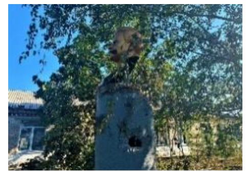 The cultural heritage site was damaged by shrapnel as a result of artillery shelling on July 28, 2022. The condition is unsatisfactory, the pedestal and bust are completely covered with explosion craters and cut by shrapnel. The monument needs restoration work with the development of scientific and design documentation.