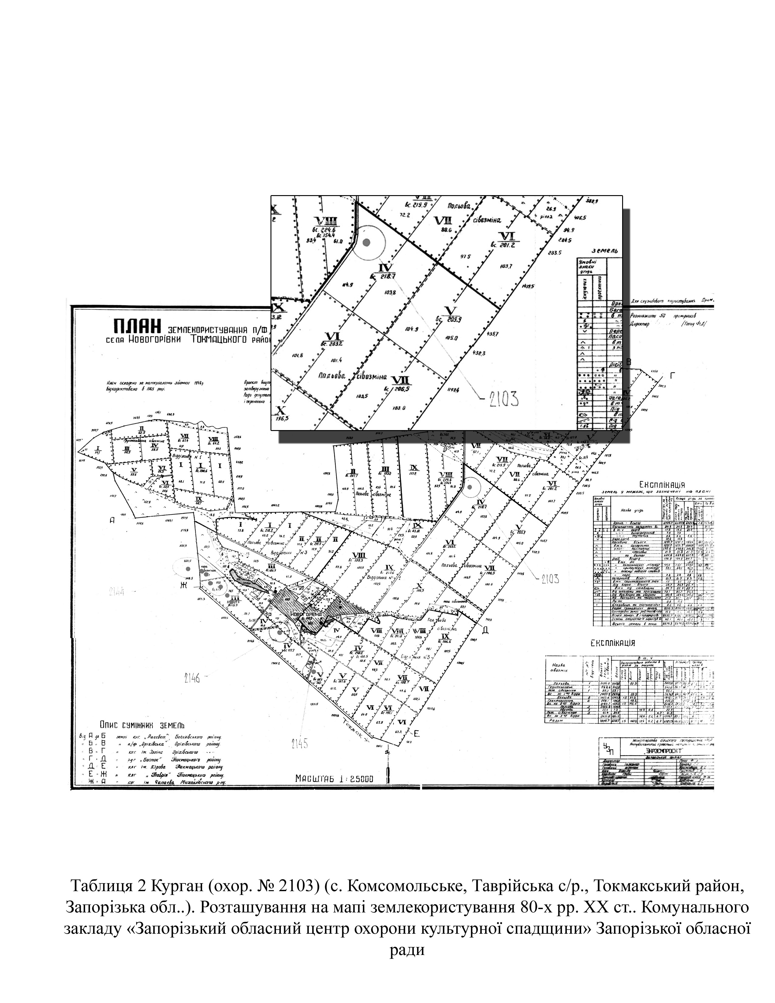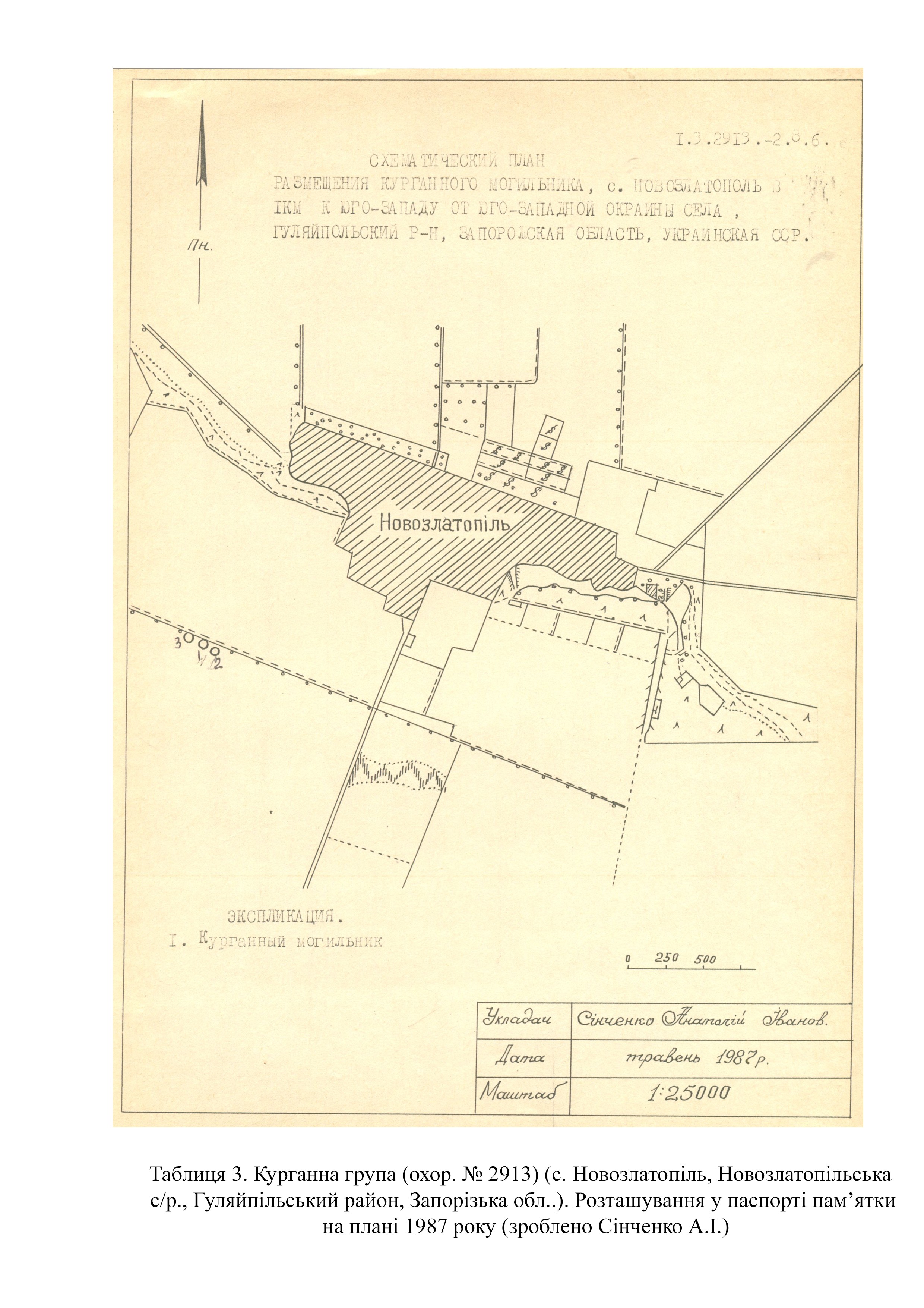 The barrow group (protection No. 2913) was first examined by A. Redkov, a research fellow of the Zaporizhzhia Regional Museum of Local Lore, in 1986 (Tables 2, 3).