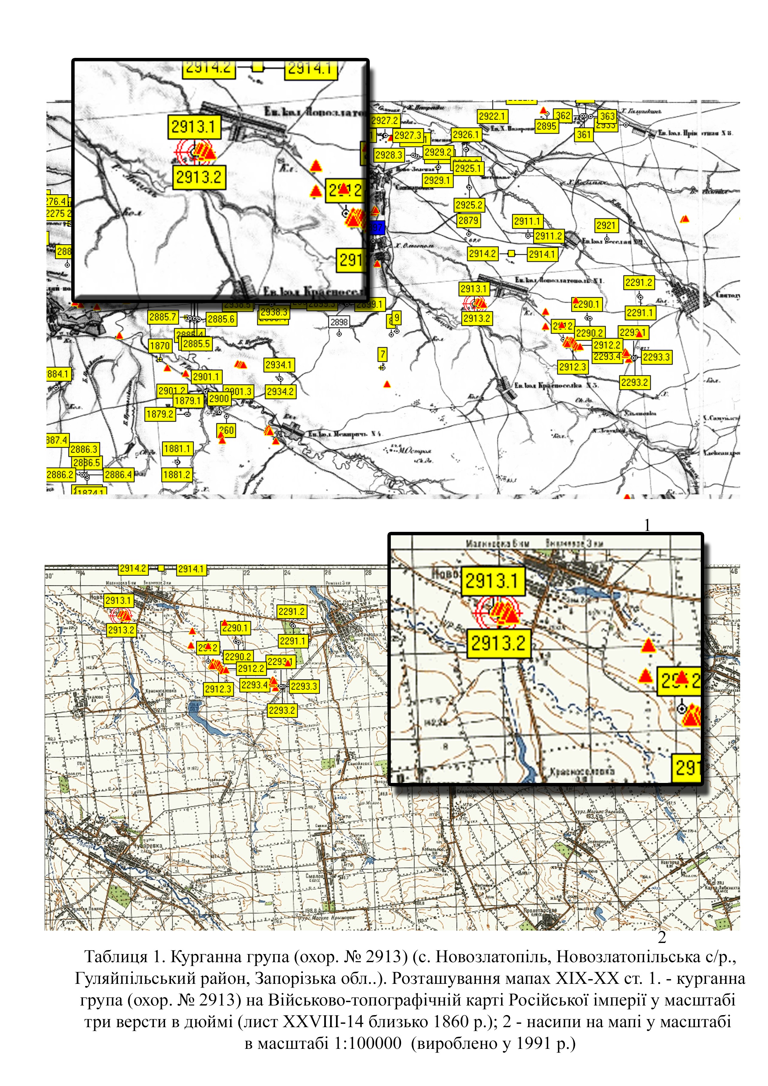 Archaeological research in the territory of Zaporizhzhia region was carried out in the 1970s and 1980s during the heyday of excavations associated with the growing construction of land amelioration structures (Toshchev, Yelnikov, Drovosekova, Drevnosti Zaporozhskogo kraya, 2003. 49-55). The same period marked the beginning of the inventory of cultural heritage sites.