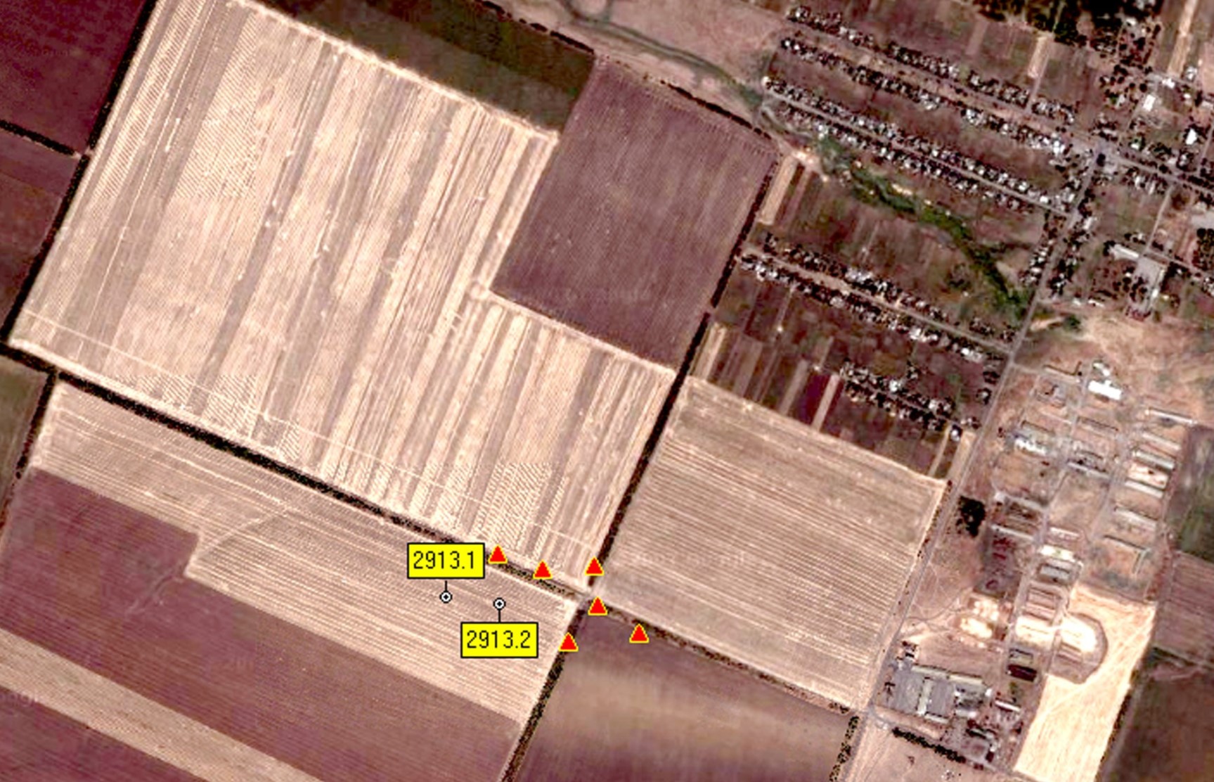 Thanks to high-quality images, it has been established that part of the hemline of barrow No. 2913.1 was destroyed by the arrangement of trenches in this area (Table 5) (a space image of the Sentinel-2 L2A satellite from the server https://eos.com as of October 18, 2023).
