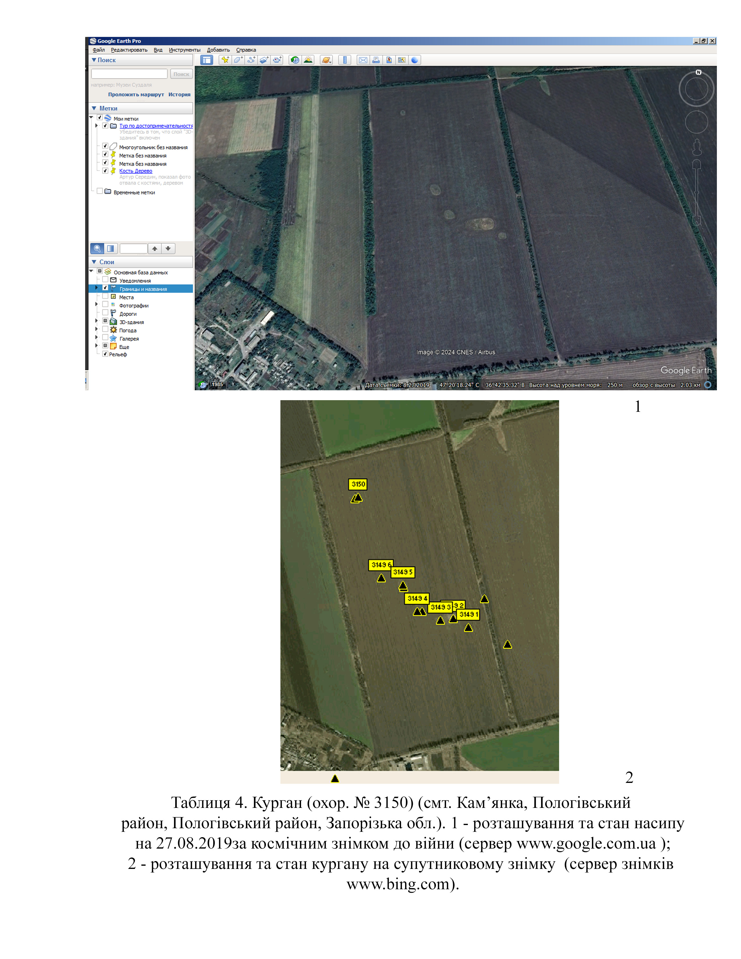 На космічних знімках від 27.08.2019 з сервера Google Планета Земля Pro (https://google-earth-pro. ) добре видно, що курган не має суттєвих пошкоджень (Табл. 4).