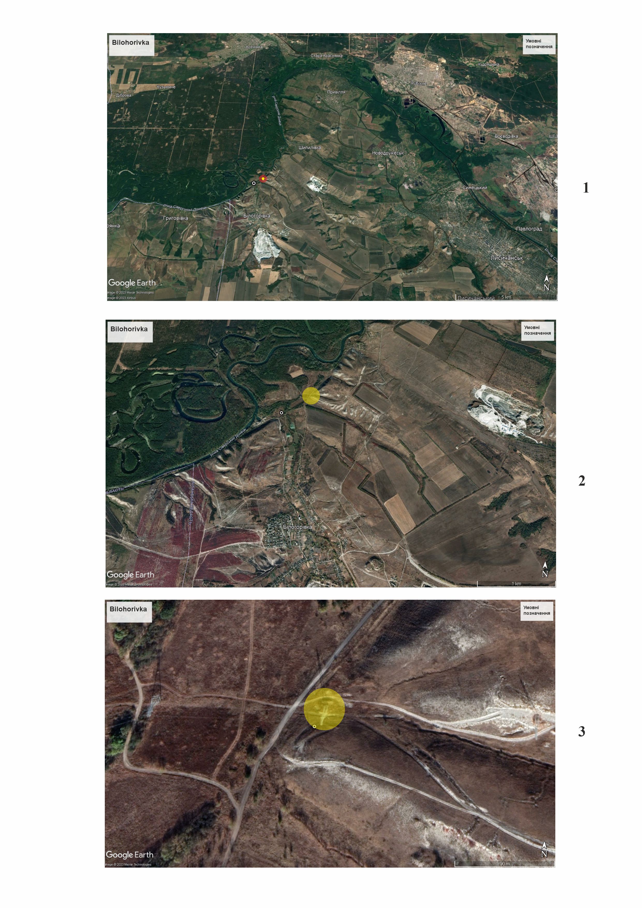 Виявлене поховання не є випадковим – приблизно за 600 м на південний захід знаходиться Білогорівське поселення, мешканці якого і облаштували некрополь по схилах корінного берега. Подібна традиція розташовування некрополів по схилах корінних берегів річок є притаманною для населення салтово-маяцької культури. Наприклад, подібний некрополь дослідив К. І. Красильніков на правому березі р. Айдар поблизу с. Лисогорівка Новопсковського району Луганської області2. Два могильники М-1 та М-2 дослідив цей же археолог на схилі правого берега р. Деркул поблизу с. Новолимарівка Біловодського (нині Старобільського) району Луганської області3. Слід згадати також й поховання на правому березі р. Красна у Сватовому, здійснене за мусульманським обрядом, досліджене у 2017 році С. А. Теліженком5. Розташування некрополів у подібних топографічних умовах, ймовірно, пояснюється побоюванням пограбування могил. Саме тому могили виривали в крейдяних або мергельних відкладеннях і цим же седиментом заповнювали їх, не лишаючи на поверхні жодних ознак. На Лисигорівському могильнику було досліджено 146 поховань (станом на 2005 рік), а в Новолимарівці 17 на першому могильнику та 24 на другому. Ще на могильнику, розташованому на правому березі р. Сіверський Донець поблизу с. Жовте (Слов'яносербський район), було досліджено 30 поховань3. Зважаючи на результати багаторічних досліджень подібних поховальних комплексів, можна стверджувати, що некрополь займав весь схил гори, а також її верхівку. Іноді некрополі розділені тальвегами тимчасових водотоків (балками). Таким чином, можна зробити припущення про те, що поховання в цій частині Сурівських гір не єдине і може бути частиною великого некрополя.