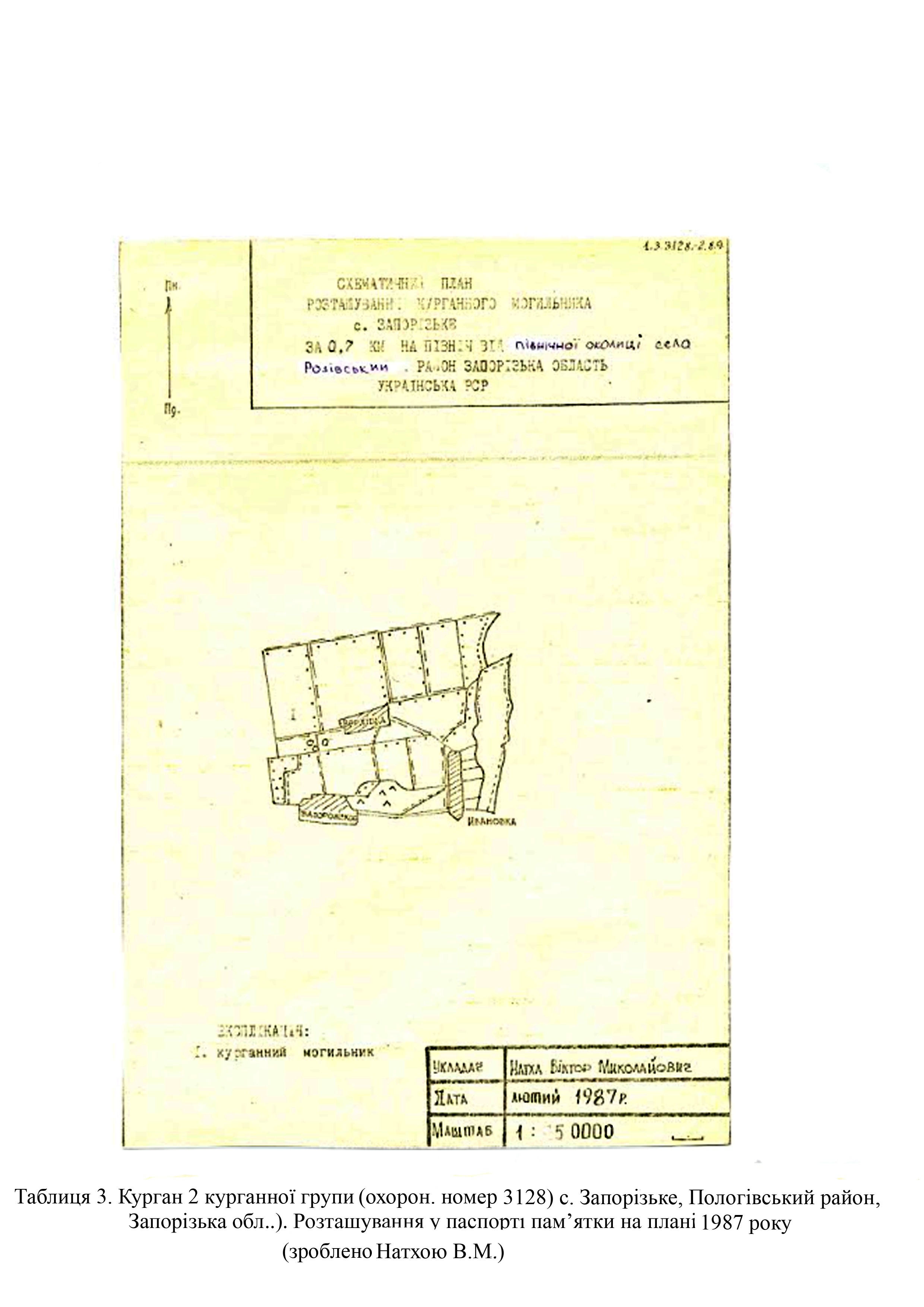 За 0,7 км на північ від північної околиці села Запорізьке, Розівська селищна територіальна громада, Пологівський район