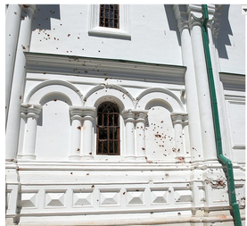 Навесні та влітку 2022 р. Успенський собор постраждав від авіаудару та артилерійських обстрілів. Численні уламки пошкодили південний фасад храму, були вибиті вікна та двері. Нових пошкоджень завдано Успенському собору 11 жовтня 2023 р. пострілом з гранатомета, зробленим з лівого берега Дінця. Зокрема пошкоджено південно-західну баню собору в місці шатрового покриття. На сьогодні стан будівлі задовільний, потребує проведення ремонтних робіт цоколя, фасадів, віконних заповнень без розробки науково-проєктної документації.