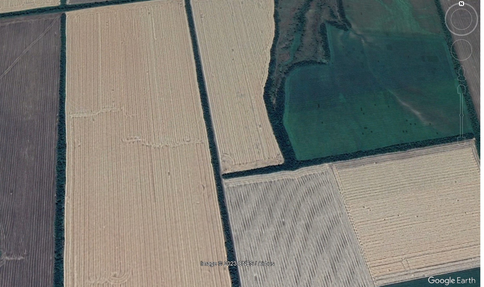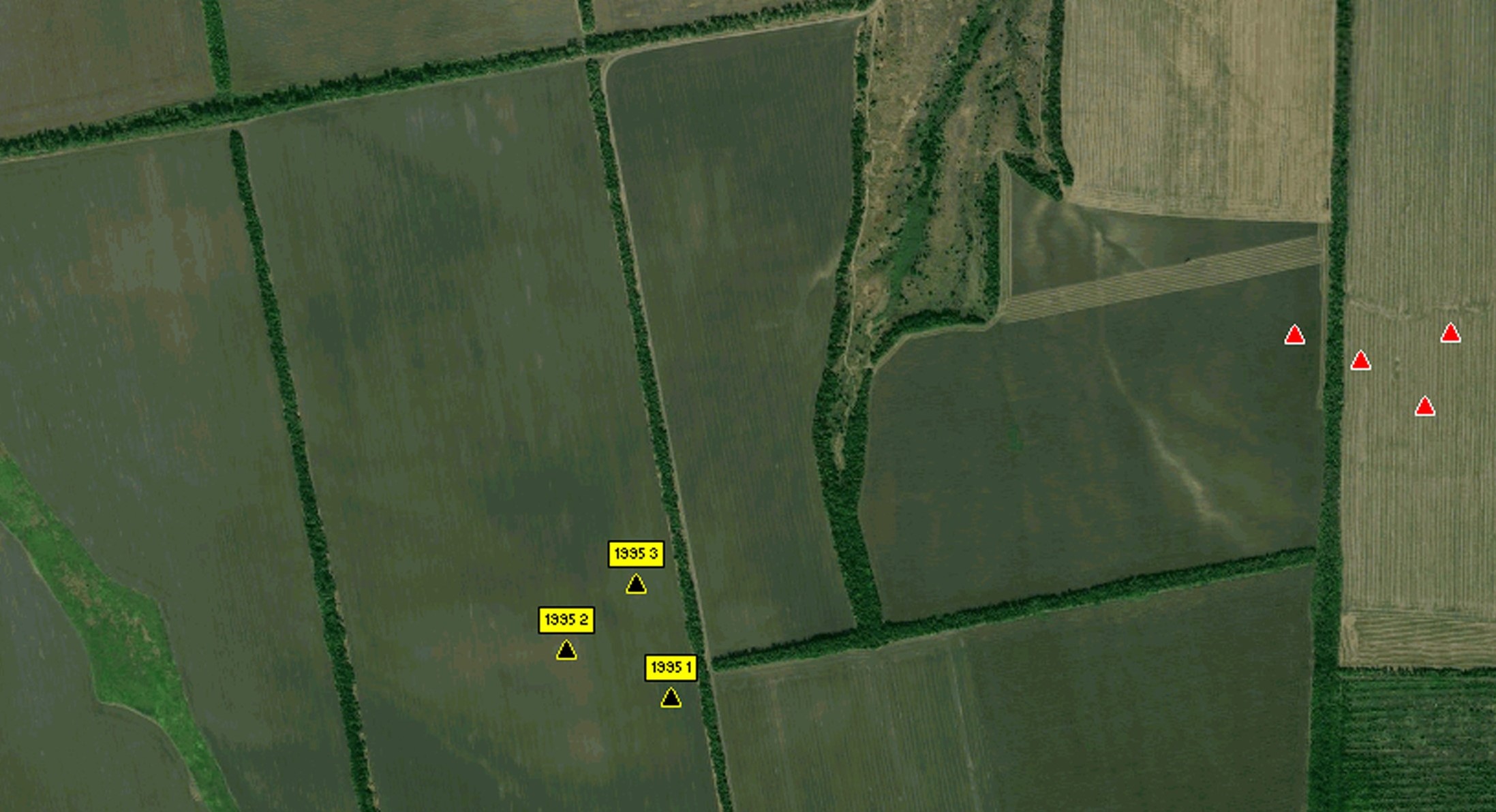 Завдяки знімкам високої якості (на 23 вересня 2023 р. космічний знімок супутника Sentinel-2 L2A з сервера знімків www.bing.com) можна встановити, що на курганах групи №1995,1-3 війсковою спорудою типу рів зруйновано поли (Табл. 5).