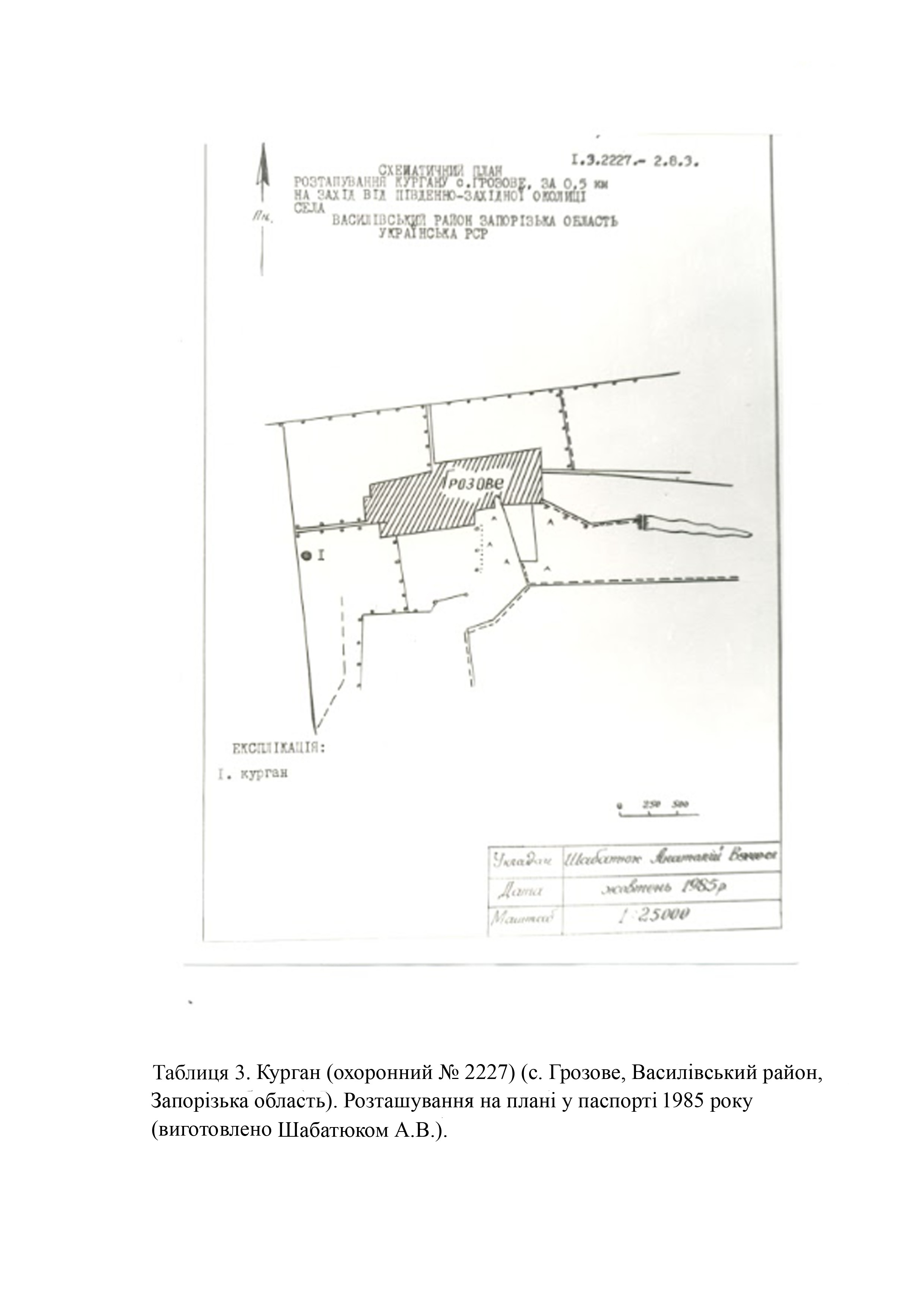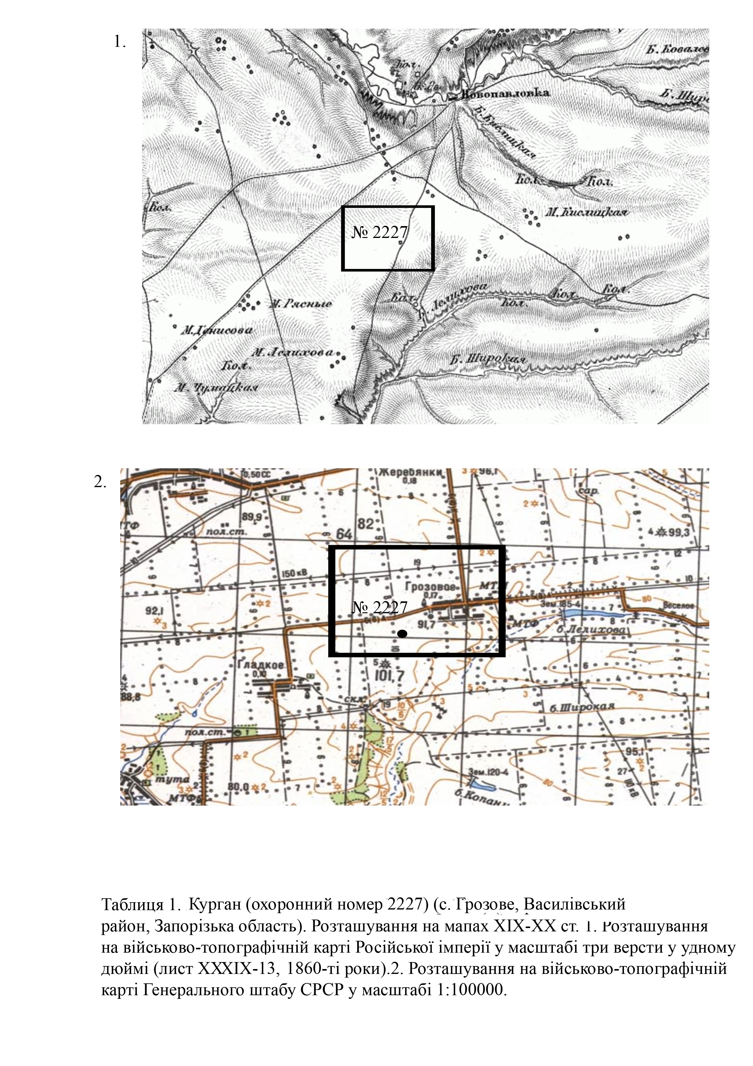 Курган (охор. № 2227) вперше обстежив у 1984 рр. науковий співробітник Запорізького обласного краєзнавчого музею Редьков А. В. (Табл. 2,3).