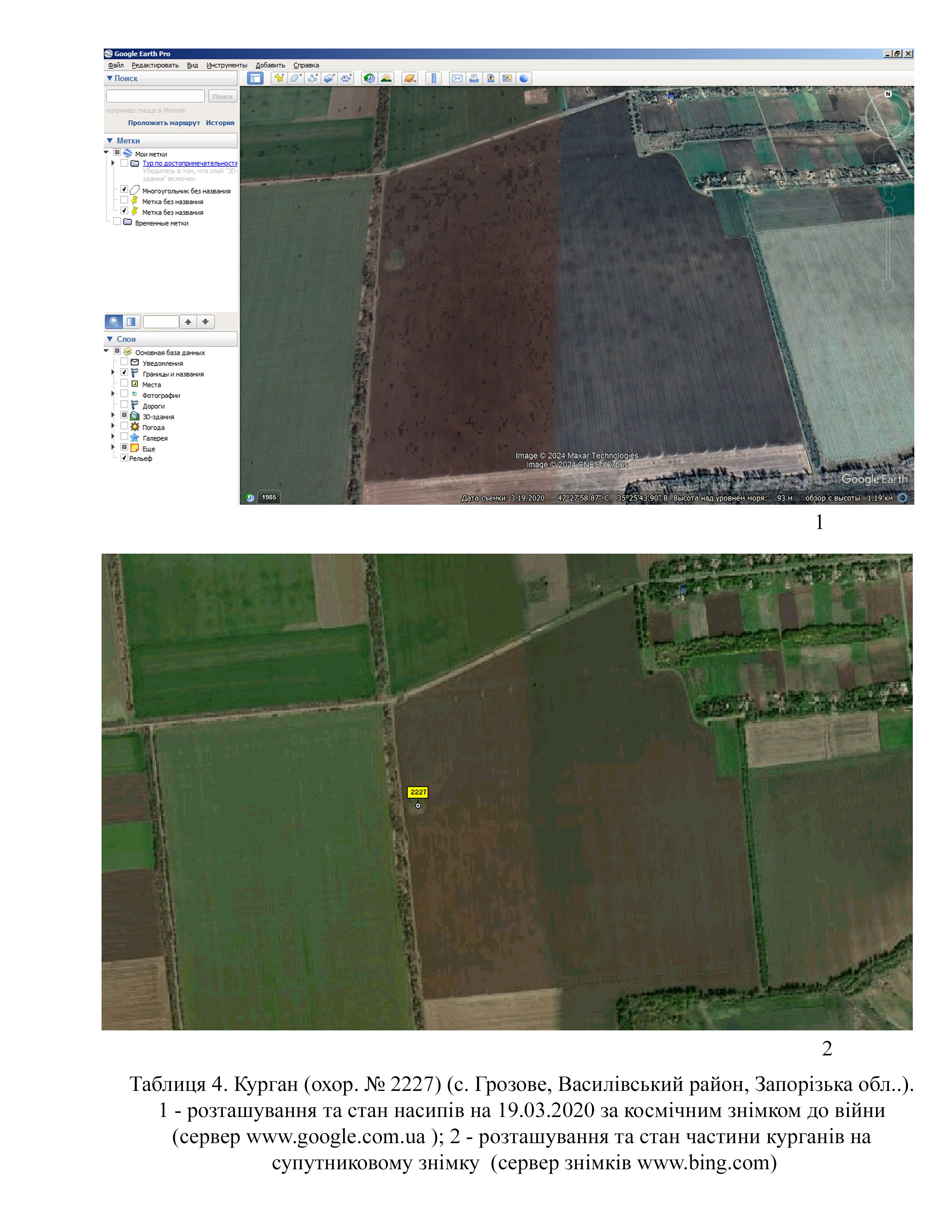 На космічних знімках від 19.03.2020 з серверу Google Планета Земля Pro (https://google-earth-pro. ) добре видно, що насип не мав суттєвих пошкоджень (Табл. 4).