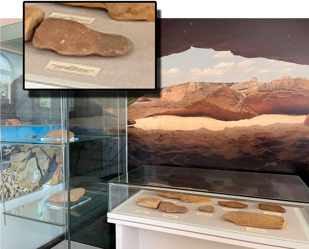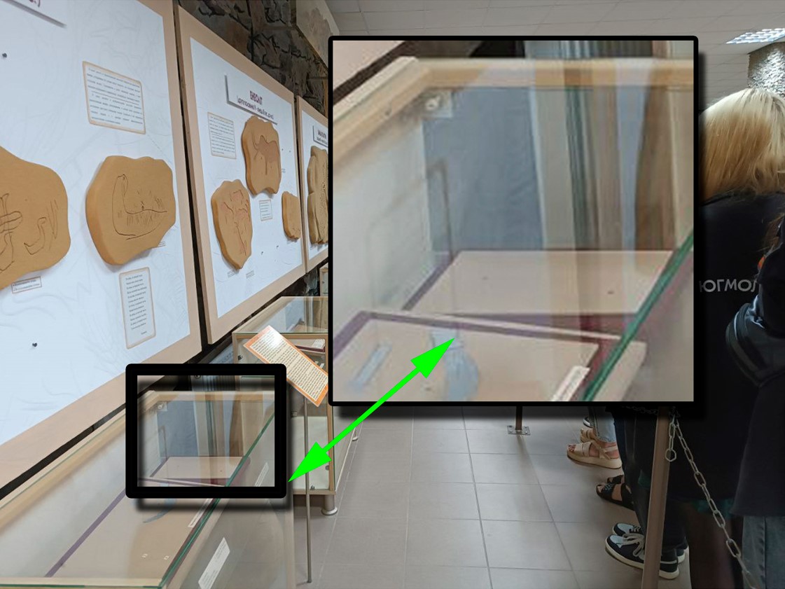 На нових фото та відео інтернеті видно вітрину з предметами мобільного мистецтва з основного фонду Національного музею «Кам’яна Могила». Завдяки Симону Радченку, ми встановили, що одна, яка розташована серед експонатів, — це чуринга № 3857 (Табл. 5).
