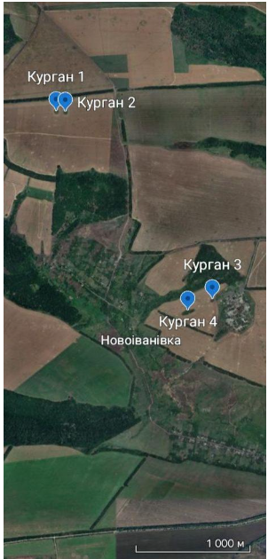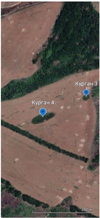 Курган 4 розташований на вододільному плато за 130 м на південний захід від кургану 3. Висота кургану 4 м, діаметр 114 х 40 м. Курган належить до так званих «довгих могил», які є об’єднанням декількох поряд розташованих курганних насипів в один спільний. Такі великі кургани є рідкістю на Луганщині. Більшість курганів на теренах Луганської області не перевищують 3 метрів заввишки та 30 м у діаметрі й датуються добою бронзи (кінець IV – кінець II тис. до н.е.), переважно середнього (XXVII – XXI ст. до н.е.) та пізнього (XVIII – XIII ст.) періодів.