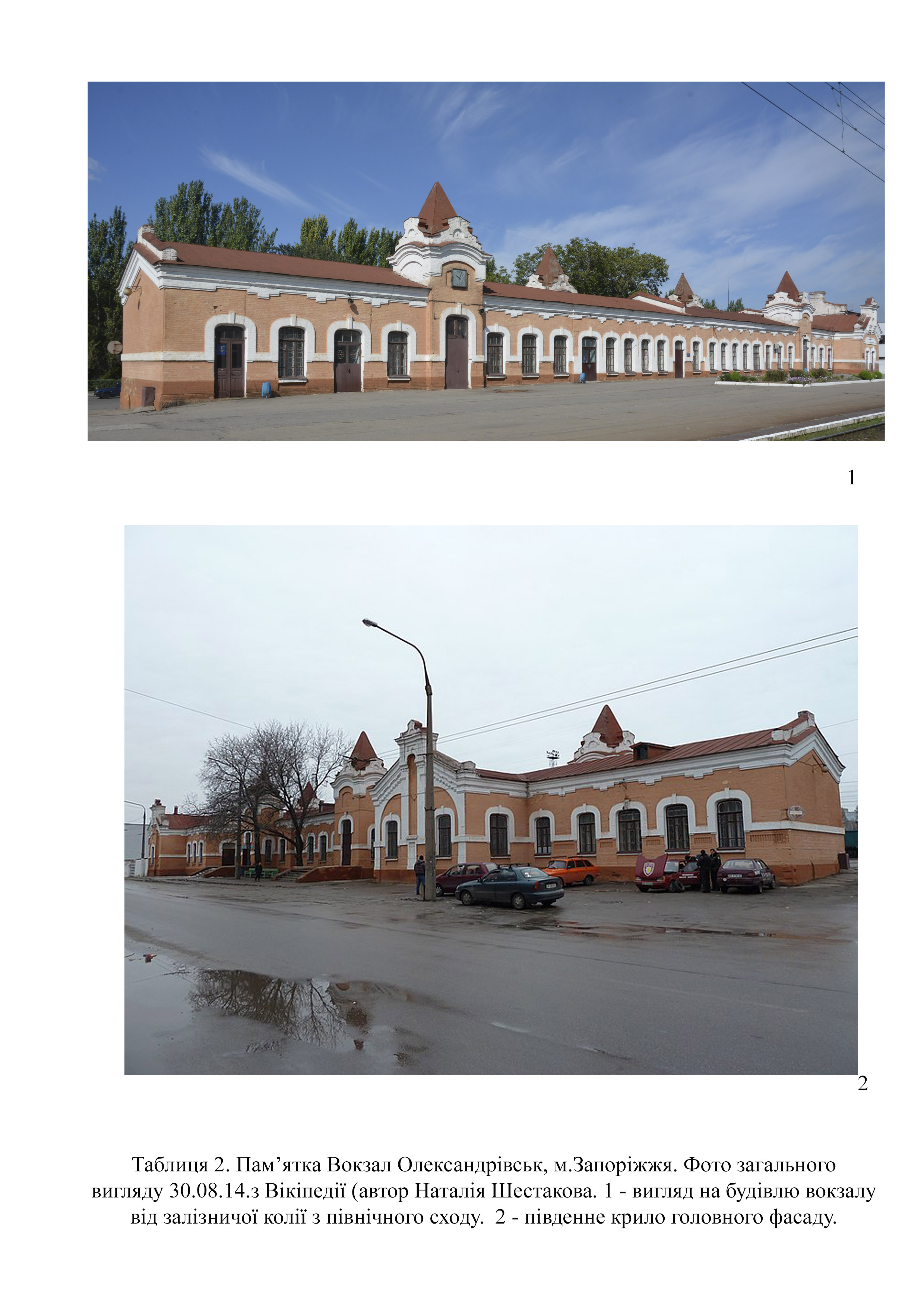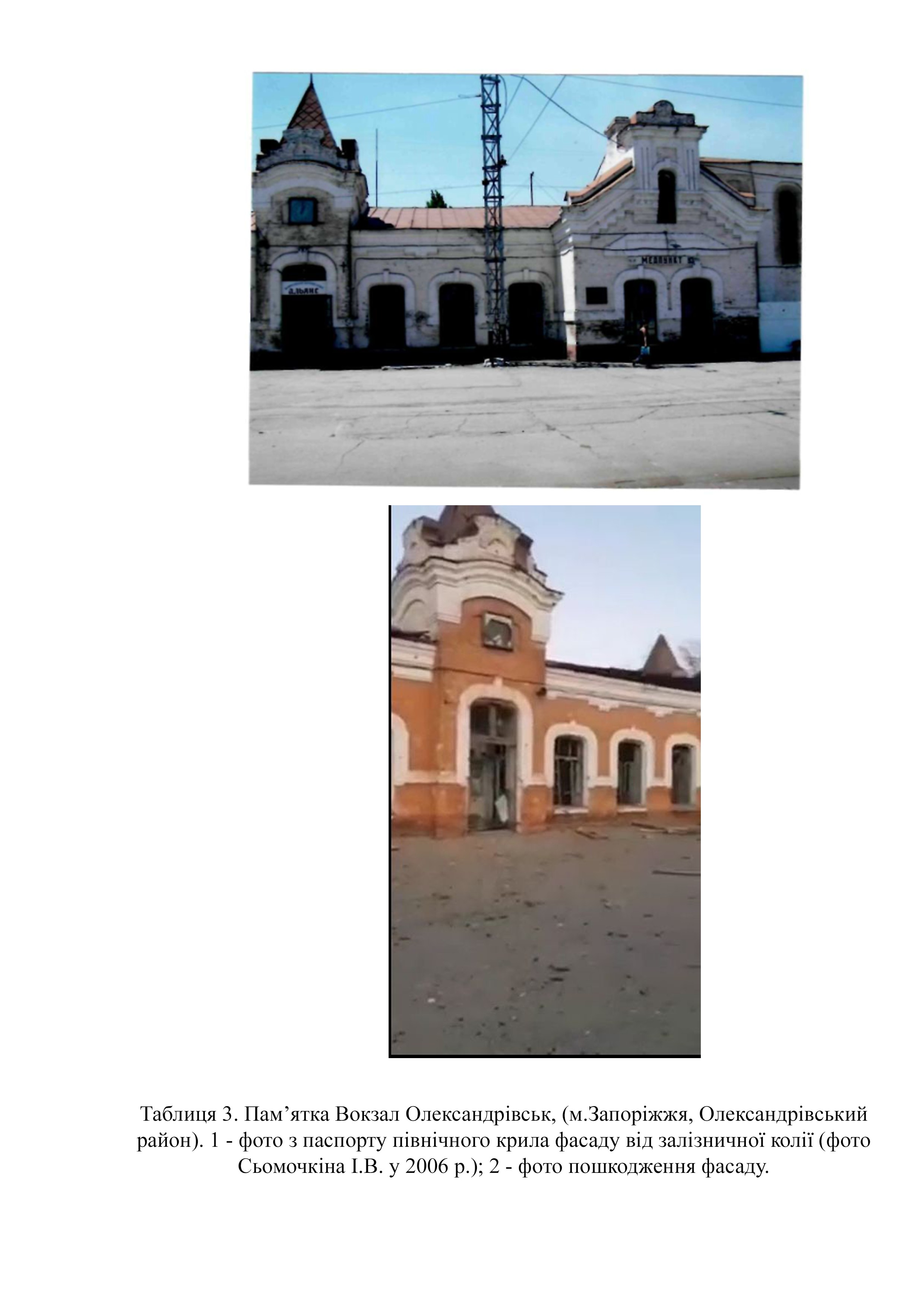 Облікову документацію на пам’ятку архітектури та містобудування з назвою Вокзал "Олександрівськ" (Вокзал „Запоріжжя-2") підготував у 2006 році архітектор «ФОП В. Кузьменко», - Кузьменко О. О. До єдиного реєстру пам’яток споруду не включено (табл.. 1).
